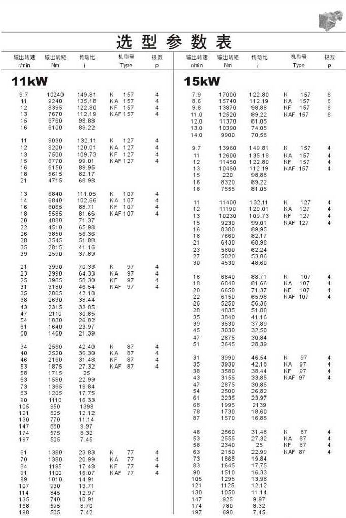 選型參數表11kW(續),15kW,
