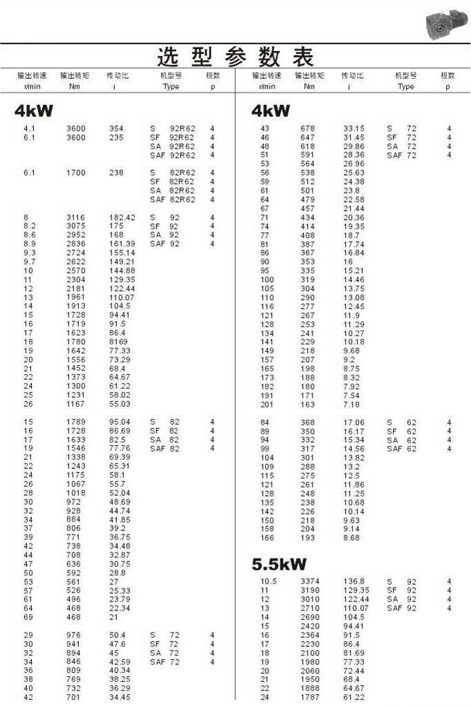 選型參數表4kW(續)和5.5kW